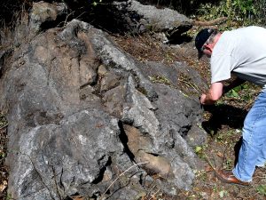 Following the visit to Hispes Rock, Anthony led the group to the Ochee Spring Quarry where indigenous people carved bowls and other items from an outcropping of steatite or soapstone over 3000 years ago.
