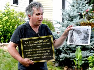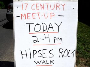 Sowams Heritage Area Project Coordinator Dave Weed organized a 17th Century MeetUp group visit to the Mabel Sprague historical house, originally known as the Andrew Harris House built in 1768, on Morgan Avenue in Johnston, RI, where owner Anthony Ricci led a walk to Hipses Rock on his property.