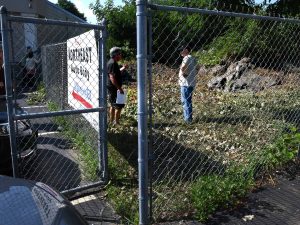 The group enters the site situated next to the Northeast Auto Body facility at 775 Hartford Avenue in Johnston. The area was recently cleared of heavy overgrowth by the owner.