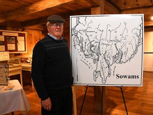 Sowams Heritage Area Coordinator Dr. David Weed spoke with participants about 17th century maps at the Celebrating Rehoboth Through Genealogy event at the Carpenter Museum on May 12, 2018. Presentations by both Rhode Island Historical Society Librarian Phoebe Bean and Dr. J. Stanley Lemons referred to important historical events in 17th century Rehoboth. At the end of the day-long event, Museum Director Elyssa Tardif and Rehoboth Antiquarian Society President Rebecca Smith dedicated its excellent document collection to the memory of local researcher and author E. Otis Dyer, Jr.