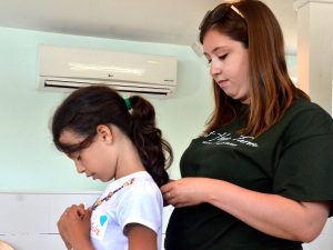 Roger Williams University senior, Carolyn Westgate, invited Starlight and BlueShell of the Pokanoket Tribe to teach bead work to campers at Camp Wetu at Mount Hope Farm. Carolyn has worked with the tribe for several years and is familiar with the many things that the Tribe can teach her campers. Carolyn plans to concentrate on some aspect of American Aboriginal culture in her senior thesis this coming year.