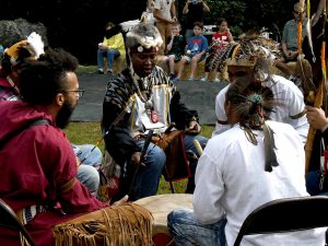 Members of the Mashapaug Nahaganset Tribe joined the Neutaconkanut Hill Conservancy Annual Event on September 22, 2018 to help recognize the important role that the Hill played in the lives of indigenous people who occupied that land for thousands of years. Raymond “Two Hawks” Watson spoke at the event, saying “So Miantanomi came up here with Roger Williams and it is said that he stood here at this very spot, reached out with two arms, and said to Roger Williams ‘You can use the land between here,’ and if you look behind us, of course, right down the middle you will see what the lovely, lovely skyline of what is now Providence.” Tribal members then offered some words from Montauk Shinnecock Shawman “Red Medicine” before drumming for the crowd of about one hundred who gathered at the park on the top of the Hill. Click here for a web page about the event and here for a four-minute video of the Sachem’s remarks.