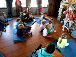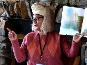 (Above) Mrs. Katz and Her Hats came from Bristol’s Rogers Free Library to read Thanksgiving stories and to make related crafts in Cove Cabin. The Friends of the Library were a major funder of the event.