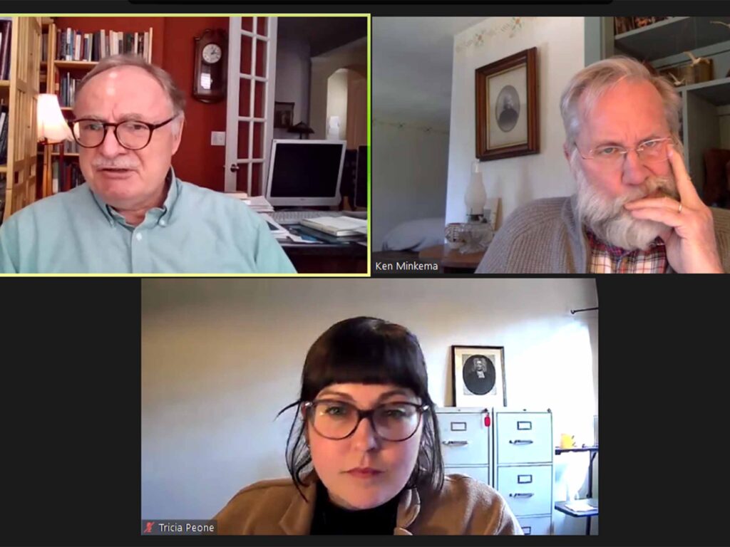 (Above) Reiner Smolinski and Kenneth Minkema discuss new perspectives on the life and legacy of Mather with Dr. Tricia Peone, Project Director of New England’s Hidden Histories. Smolinski and Minkema are editors of A Cotton Mather Reader, an authoritative selection of the writings of one of the most important early American writers.