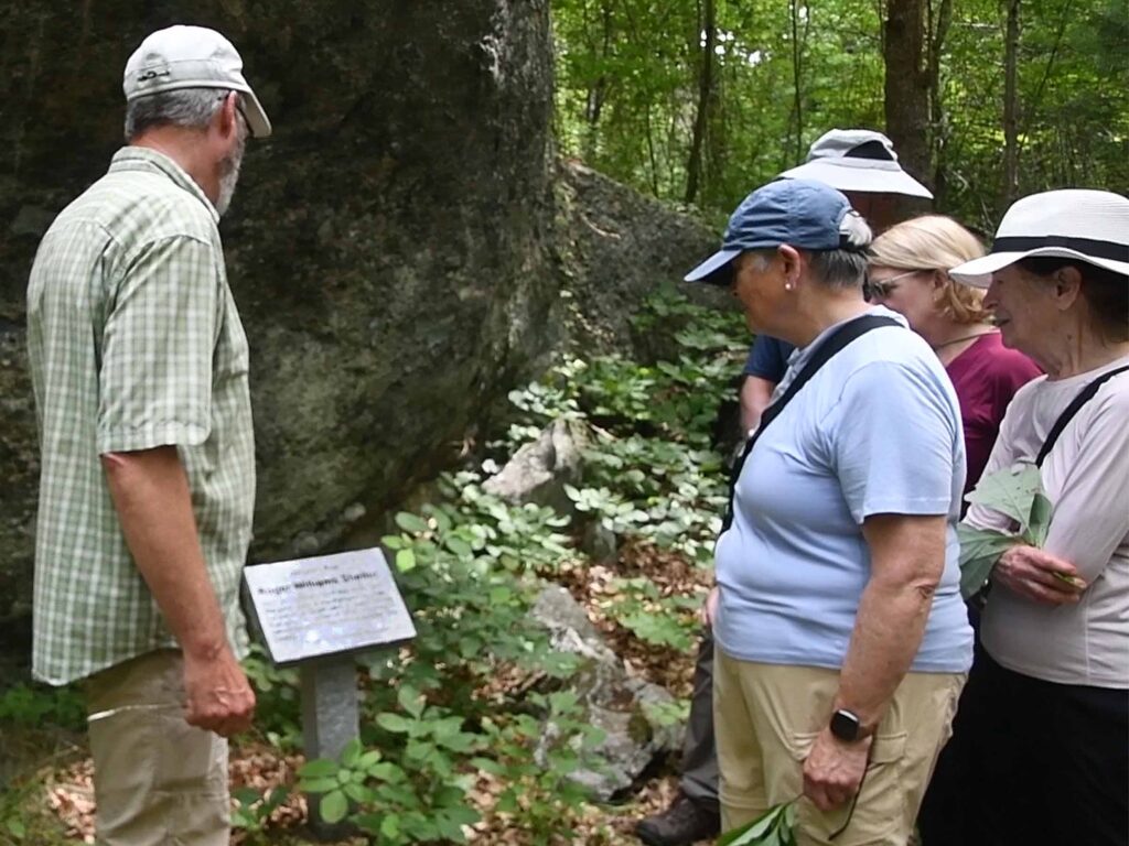 Cultural Historian and retired Providence College professor Keith Morton led a group to Margaret’s Rock, the location where it is said that Roger Williams was nursed back to health by a Native Woman in the winter of 1636 following his banishment from Salem, MA. Click here for more about Williams and here for a 40-minute video of the event on July 20, 2024. Click here, here, here and here for other web pages with video links.