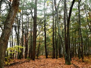 (Above) Barrington Conservation Land Trust volunteer Bill Kirkpatrick led an hour-long tour of the 32-acre Johannis Farm property in Barrington and Swansea on October 28, 2020. The area was part of Sowams, the homeland of the Pokanoket Tribe who occupied the area for over 10,000 years and who continue to act as guardians of their ancestral land.