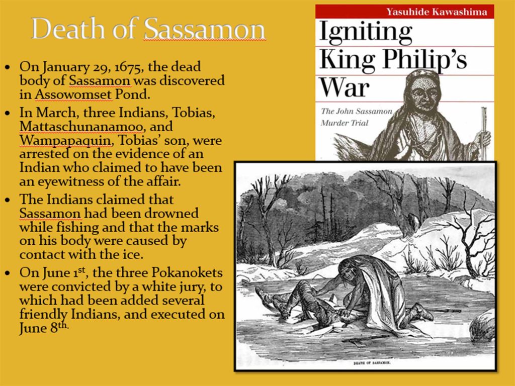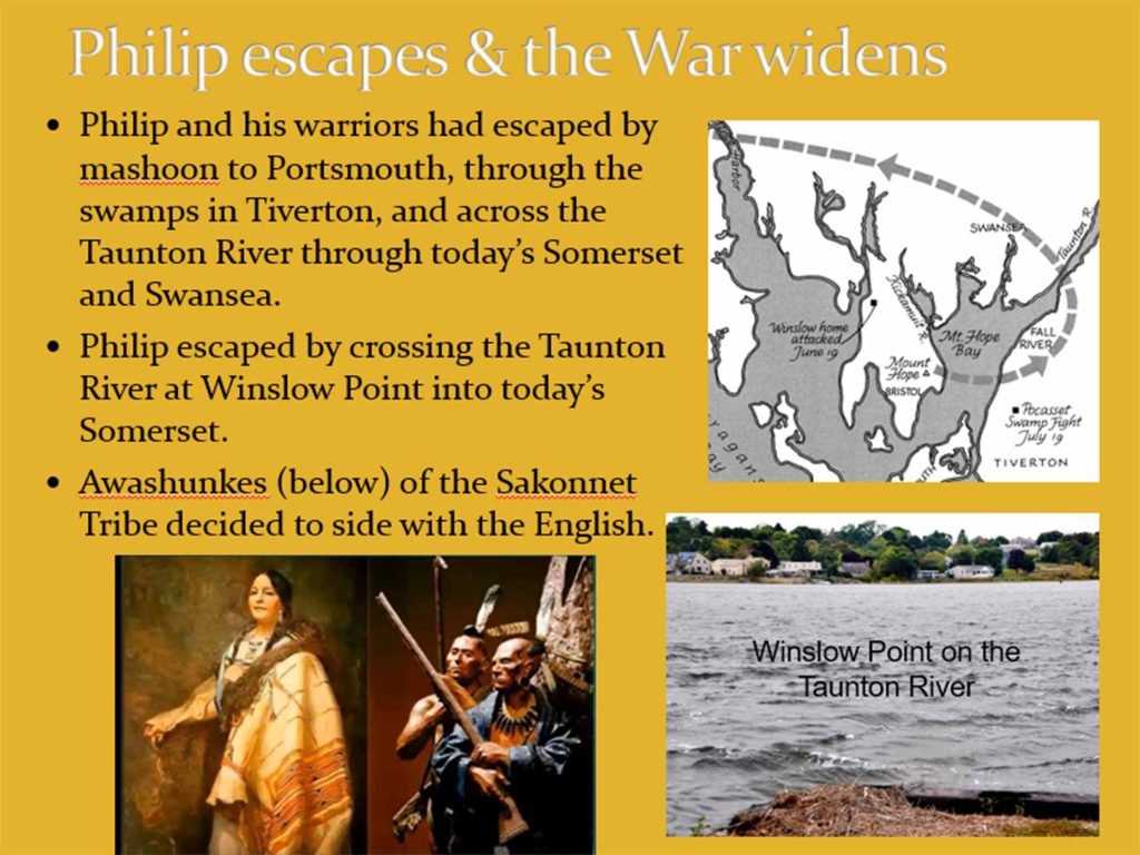 Weed described the conditions that led to the War, the precipitating event of Sassamon’s murder, and the outbreak of the War in today’s Warren, RI.