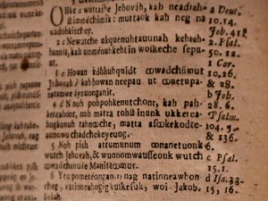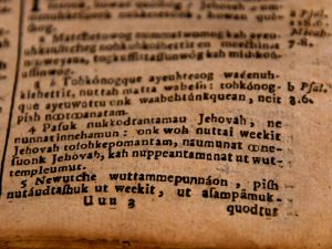 A second edition of the Eliot Bible, published in 1685, was on display for one evening at the Natick Historical Society on March 15, 2019.