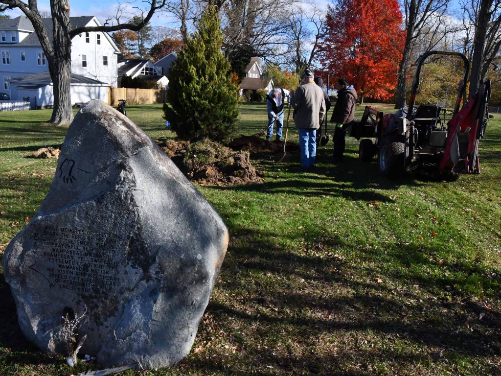 Cedar tree planted at Burr’s Hill in honor of the Pokanoket Tribe