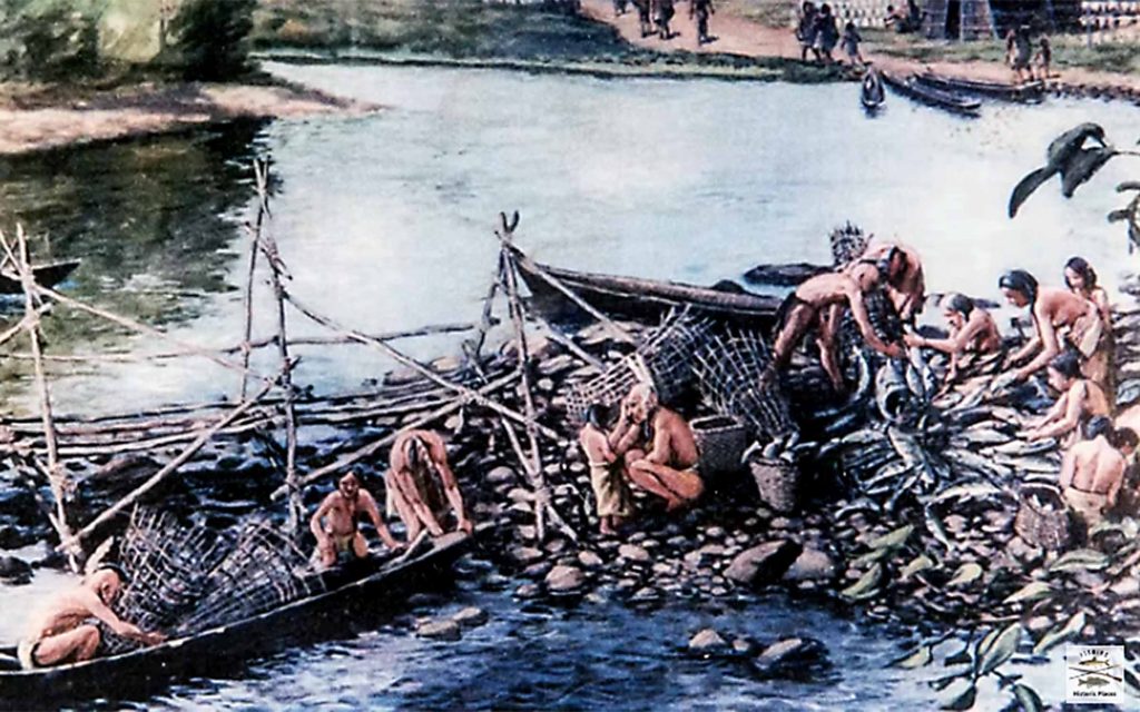 March was a time of renewal for both colonist and native people. For the Native people, March was a time of tribes coming back together after the long winter hunt and a time to celebrate the death of winter. Using fish weirs, Native people would catch their bounty during the spring when the fish were running up the streams to spawn.