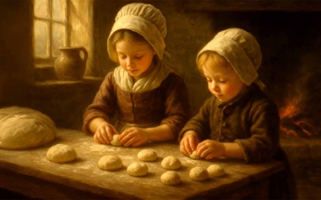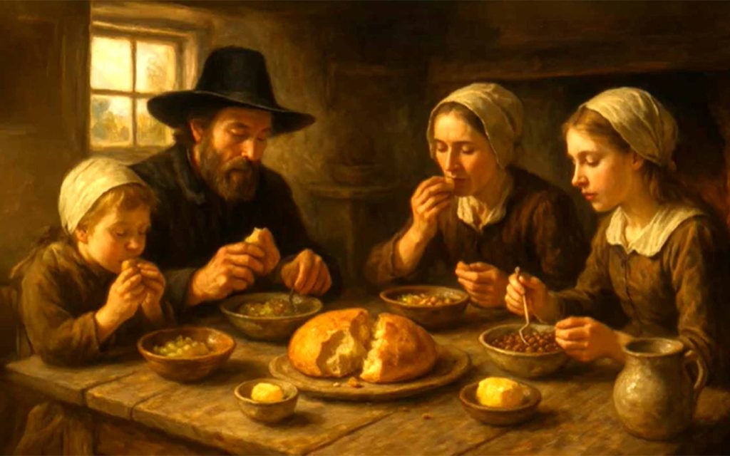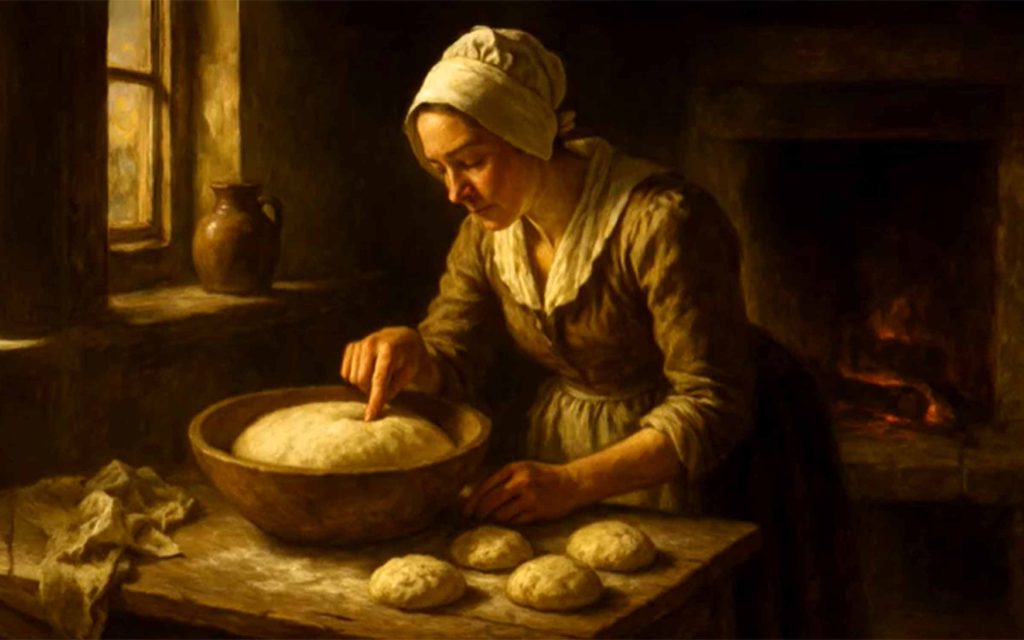Step quietly into a 17th-century New England kitchen, where the scent of freshly baked bread mingles with the steady rhythm of early American life. In this gentle, detailed narration, explore how Pilgrims made bread—grinding cornmeal, feeding sourdough starters, and baking loaves in stone hearth ovens. Click here to see the one-hour video followed by another hour of relaxing music recorded on June 19, 2025 by Fall Asleep to History Now.