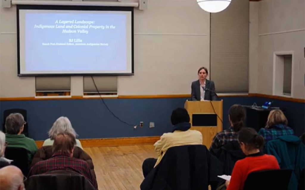 This presentation by BJ Lillis is about changing land rights in the colonial Hudson Valley including Indigenous and tenant resistance to a manorial system was hosted by the Jacob Leisler Institute for the Study of Early New York History, in collaboration with the Hudson Area Library. Lillis traces Indigenous survival and resistance to colonialism on Hudson Valley manors from the late 17th century to the 1760s, when an unlikely alliance between tenant farmers and Native people organized tenant uprisings, rent strikes, and coordinated legal action against Hudson Valley landlords. Click here for a 77-minute video of their presentation posted on March 13, 2025.