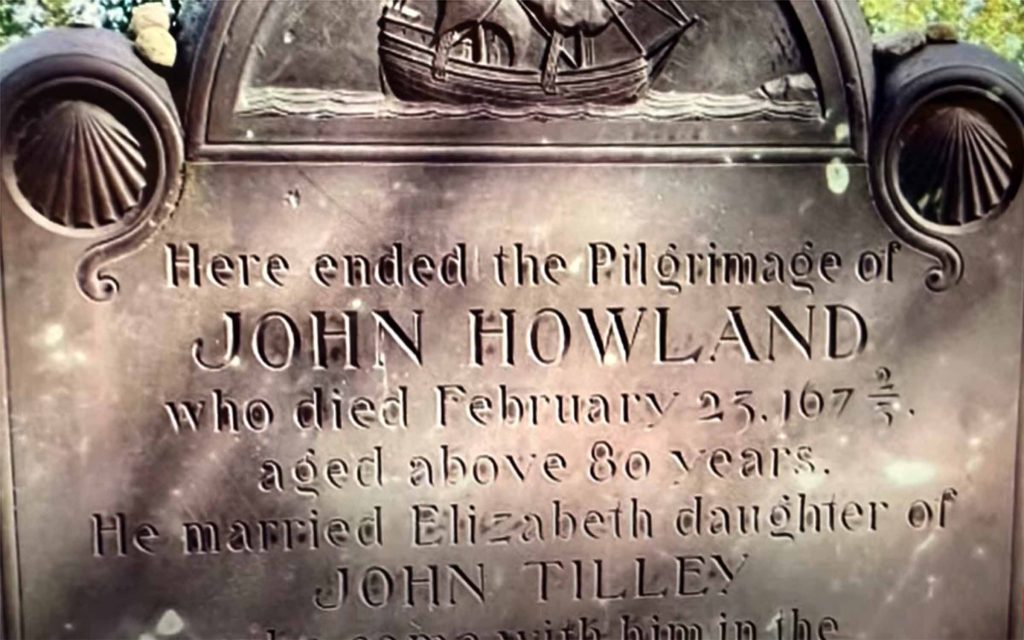 John Howland and his wife, Elizabeth Tilley (above, center), who was one of the few original Mayflower passengers still alive at the time of King Philip’s War (above, left), had four sons and six daughters. Jabez, their eighth child and his wife Bethia lived in the house at 33 Sandwich Street in Plymouth. The house is now owned by the Pilgrim John Howland Society. While John Howland’s burial place is unknown, a cenotaph was placed at Burial Hill in Plymouth. Elizabeth died in 1687 and was buried in the Ancient Little Neck Cemetery in East Providence.