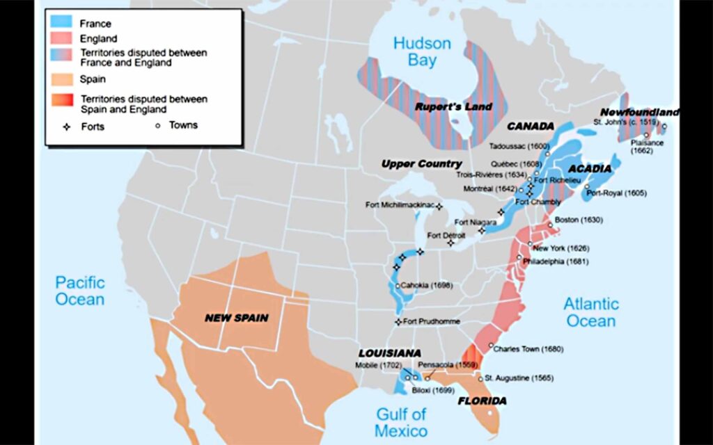 The governor of New France was Count Frontenac, a man of action, keen, fiery, and daring, a splendid executive, an able commander, and well called the Father of New France. Gathering his Frenchmen and Indians as quickly as possible, Frontenac formed three war parties on the St. Lawrence in the winter of 1689-90. Click here for a 15-minute video posted on June 15, 2024 by Classic History about the French and Indian Wars that followed.