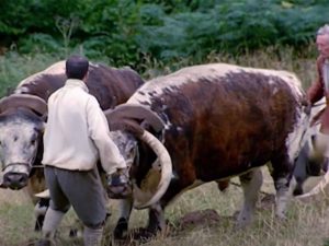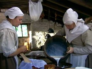 Everything must be done by hand, from ploughing with a team of oxen using a replica period plough and thatching a cowshed using only authentic materials, to making their own washing liquid for laundry and harvesting the hay and wheat with scythes and sickles.