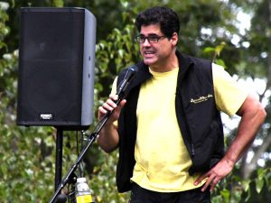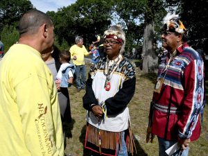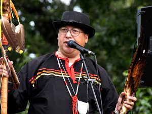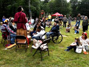 Ray “Two Hawks” speaks prior to drumming with several tribal people including two brothers from Bristol, RI.
