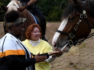 Neutaconkanut Hill Conservancy Secretary Susan Fitzpatrick and President Robert Fitzpatrick sport the organization’s yellow shirts at the event.