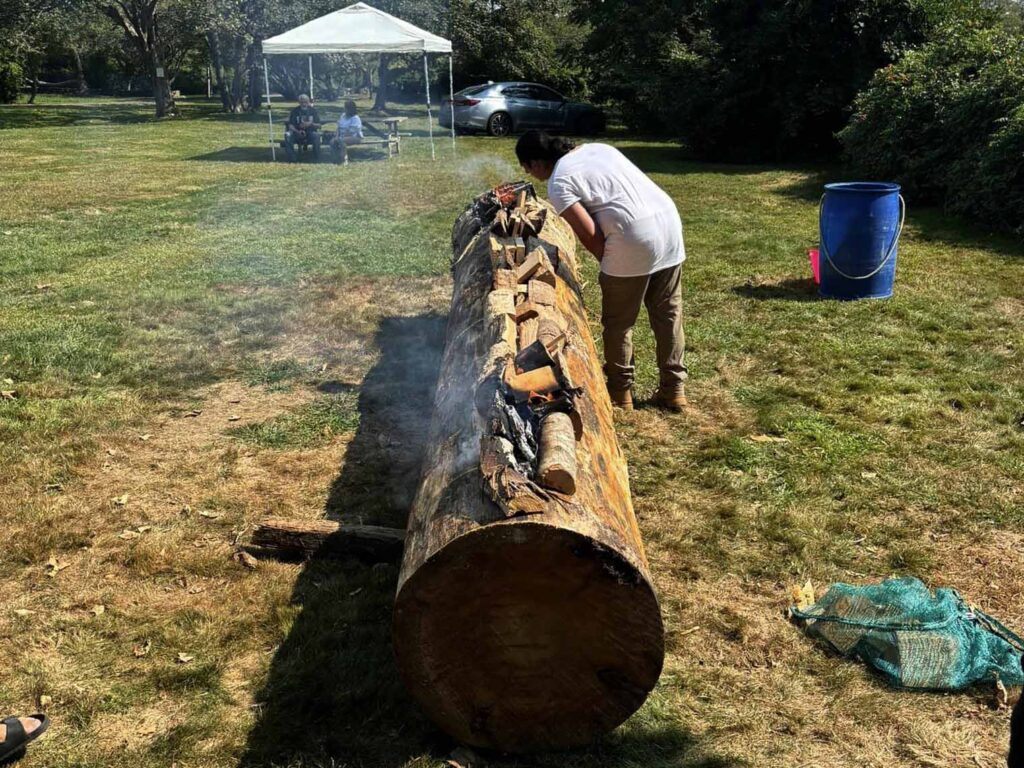 After a night burn, Jonathan and his team plan to conduct a Reconnecting Ceremony and launch the mishoon near Squant Rock, a sacred Wampanoag site, at Sakonnet Point, and paddle the mishoon on the Sakonnet River.