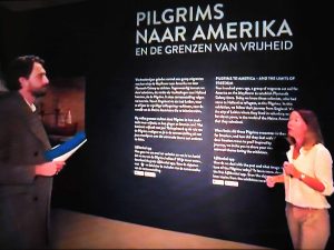Jori Zijlmans, Curator of the Museum de Lakenhal, speaking about the first Thanksgiving in Plymouth said at “. . . it was celebrated by the Pilgrims and also the Native Americans came along, the Pokanokets. . .”.rather than referring incorrectly to the “Wampanogs”, a name that was never used until 1702 to describe the people who the Pilgrims encountered. Her statement can be heard at 1:22:07 in the video. The tour also included a stop at “Smelly Ally” where Separatist William Brewster lived in Leiden.