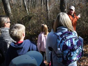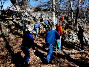 Walkers traversed the trails before climbing the back side of Abram’s Rock which stands more than thirty feet above the surrounding forest.