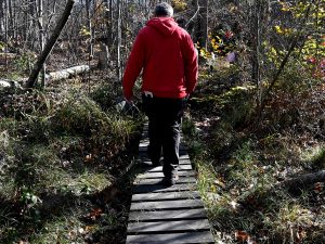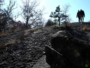 Walkers traversed the trails before climbing the back side of Abram’s Rock which stands more than thirty feet above the surrounding forest.