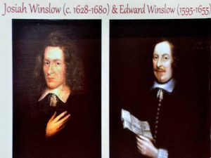In her presentation, Michelle (pictured above) noted that Penelope Pelham Winslow, a member of the English gentry who was married to Plymouth Colony Governor Josiah Winslow (pictured center with a portrait of his father, Edward, on the right) was one of the most powerful women in Plymouth Colony’s history. Like most of her female contemporaries, however, Penelope has largely been forgotten