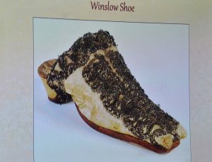 Pictured above is Ferriers, where Penelope was born. Though she authored or is mentioned in few surviving documents, Penelope left behind a trove of physical evidence—from surviving homes and possessions to archaeological artifacts—that provides great insight into her experiences. They also offer a portal into the world of Plymouth Colony’s women. (Pictured above is a shoe once thought to be hers but later discovered to be a man’s shoe.) [The Winslow portraits, shoe and purse are all displayed at the Pilgrim Hall Museum in Plymouth, MA.]