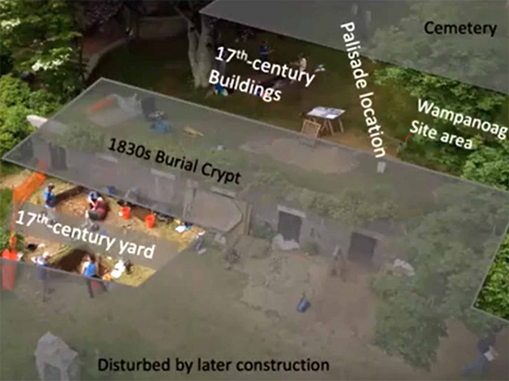 For the last several years archaeologists from the University of Massachusetts Boston have been excavating remains of the original 17th-century Plymouth Colony settlement on Burial Hill in downtown Plymouth, MA. Dr. David B. Landon of the Andrew Fiske Memorial Center for Archaeological Research gave a 69-minute on-line presentation of some of the findings on November 17, 2021 video by the Massachusetts Archaeological Society.