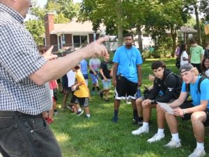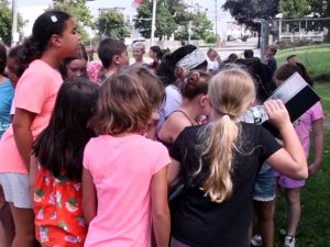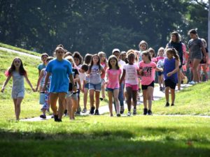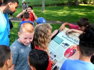 Camp staff lead over fifty campers to the site of the historic marker that was placed in the Park in 2020 to describe the history of the location and of the tribe that has occupied this land for over 8,000 years.