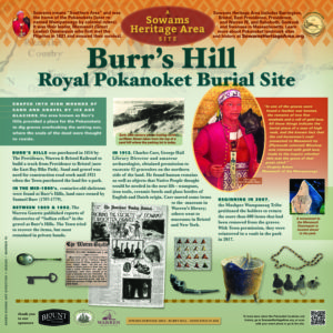 Dr. David Weed, Coordinator of the Sowams Heritage Area Project, met with children at the Summer Day Camp at Burr’s Hill Park in Warren, RI on August 6, 2021. There, he talked about the history of the Pokanoket People who established a Royal Burial Site at the Park in the 16th century where it is believed that the Massasoit Ousamequin was buried in 1661. Click here for a 13-minute video of his talk. Click here for a pdf of the handout. Click here for a page describing Pokanoket Heritage Day held on August 8th.