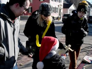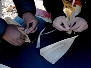 A corn husk doll is a Native American doll made out of the dried leaves or “husk” of a corn cob. Corn husk dolls have been made by Northeastern Native Americans probably since the beginnings of corn agriculture more than a thousand years ago. [Wikipedia]Three Pokanoket women demonstrated making dolls as part of Warren’s Holiday Festival on November 27, 2021 at Massasoit Park on Water Street. Click here for a 4-minute video of the event and here for a demonstration of how to make a corn husk doll.