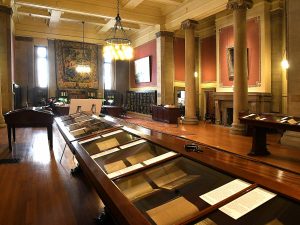 The 13,000 books in the Library constitute one of the four largest collections of early American imprints in the world and include many texts and maps pertaining to New England in the 17th century.