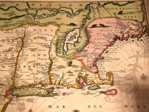 Included among the maps held by the Library are one of the eastern coast of North American by Dutch cartographer Jan Jansson and embellished by Nicolacs Visscher in 1661 and a 1605 engraving of Port St. Louis/Wampanoag homelands by Samuel de Champlain.
