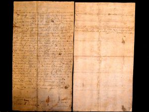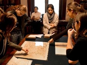 Scholars attending a related symposium gathered at the John Carter Brown Library on April 11, 2019 to view a selection of 17th century archival selections.