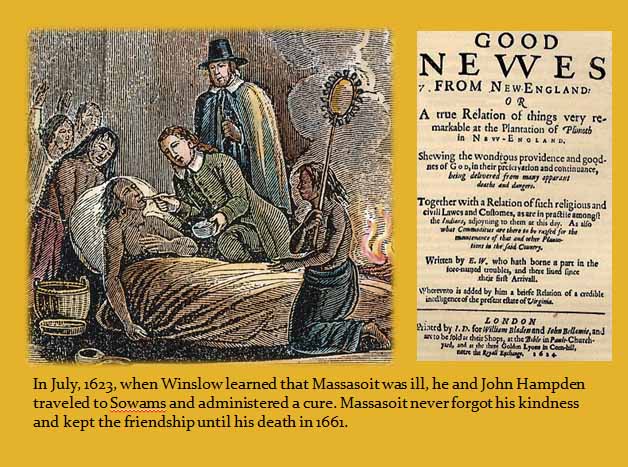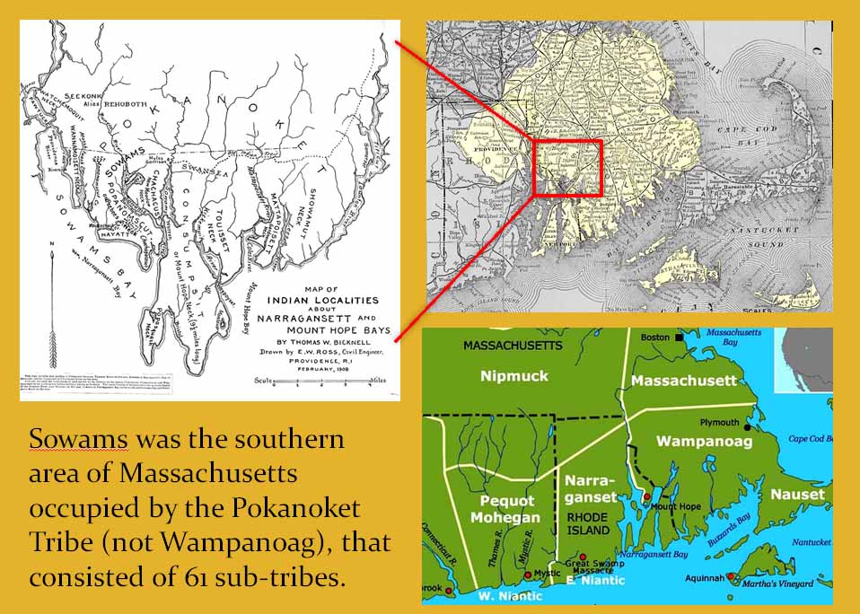 Weed described the territory known as Sowams in East Bay Rhode Island and nearby Massachusetts, the homeland of the Massasoit Ousamequin and the Pokanoket people. Ousamequin met the Pilgrims in 1621 following a devastating plague that killed thousands of Indigenous people along the Atlantic coast. When the Massasoit became ill in 1623, Pilgrim Edward Winslow nursed him back to health.