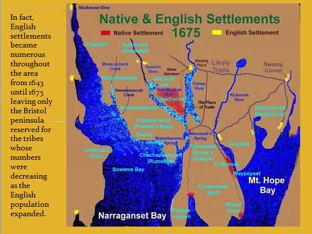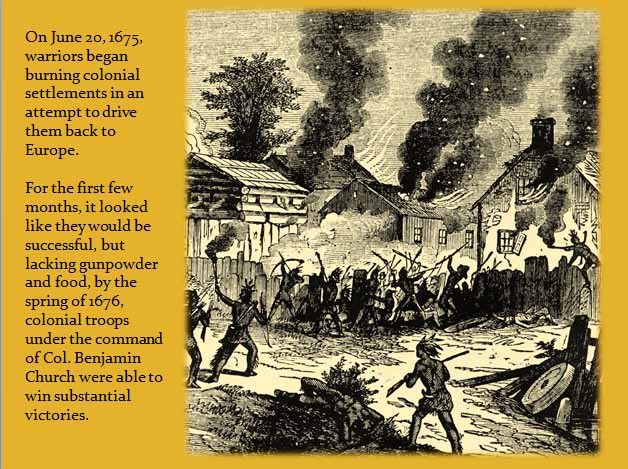 Weed went on to describe the founding of Providence by Roger Williams and the factors that led to the outbreak of the King Philip’s War in 1675-76 and drove nearly all of the Pokanokets out of Sowams.