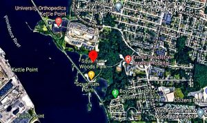 “The area around Squantum is practically the only untouched spot along the East Providence waterfront and is thus a significant cultural landscape.” [National Register of Historic Places] (Above, right) the East Bay Bike Path runs through Squantum Woods Park and can be accessed from a parking lot west of University Orthopedics.