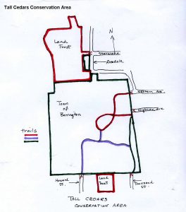 Tall Cedars Conservation area is another ‘jewel’ in Barrington’s ‘necklace’ of green spaces – a wooded wetland with vernal pools and a small stream. The first tax records in 1923 show that Tall Cedars was once owned by Frederick S. Peck who dates back to original Barrington English settlers.