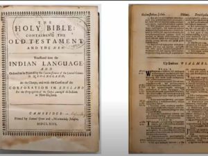 During her July 2020 fellowship at AAS, Diane Glancy wrote “New England Indians,” a section of Quadrille, a book about the intersection of Native history and Christianity. The 1663 Indian Bible was the first Bible published in America. The Reverend John Eliot worked for fourteen years translating the sixty-six books of the Bible into Algonquian with the help of four Native men. . . “What was it like?”— is the question which began her research and creative process.