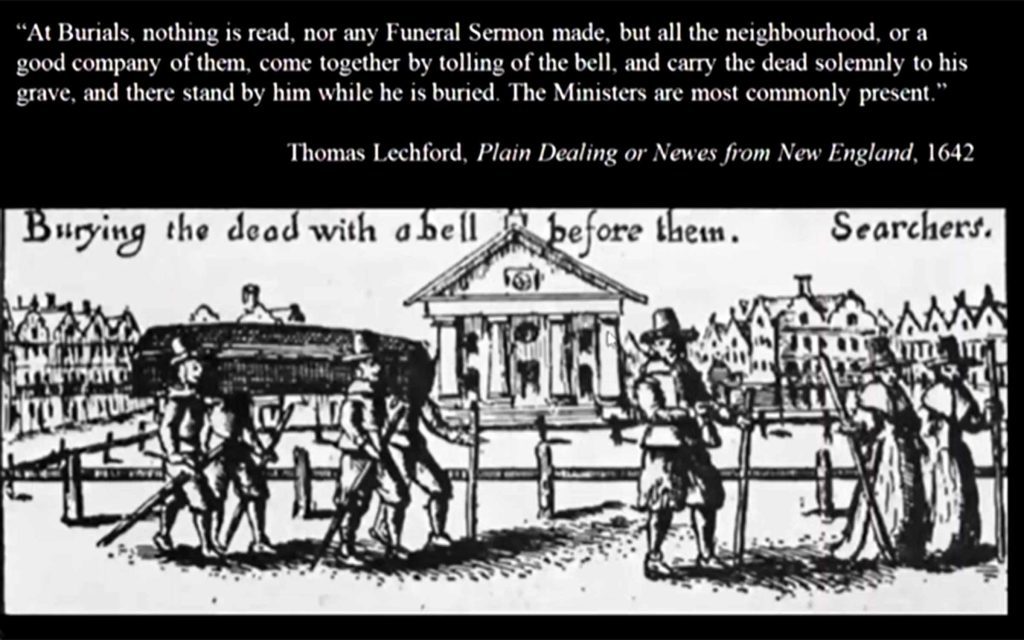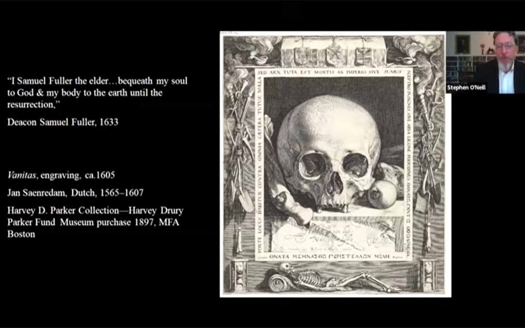 Join historian Stephen C. O’Neill as he explores all the elements of a 17th-century colonial burial, from treatment of the body, type of coffin, the funeral, the burying ground, digging and marking the grave, and the mourning of family, friends, and community. Stephen is a historian, author and scholar of 17th century Plymouth Colony’s material culture. Click here for a 69-minute video of his talk posted on September 24, 2025 by The Alden House Historic Site.