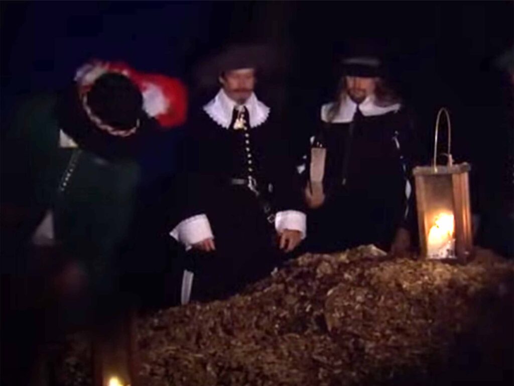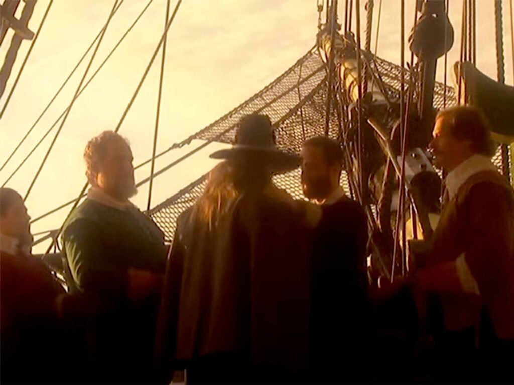 Professor Emerson Baker continues narrating the story that included scenes with present-day Wampanoag Tribal Historian David Weeden playing the Massasoit Ousamequin who met with Governor Carver in March, 1621, to hammer out a mutual self-protection treaty that lasted for fifty years.