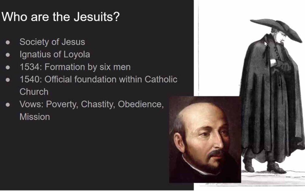 The Jesuits are a Roman Catholic order of priests and brothers that operated global missions beginning in the sixteenth century. They were influential in the histories of New France and Maryland, but had little influence in southern New England.