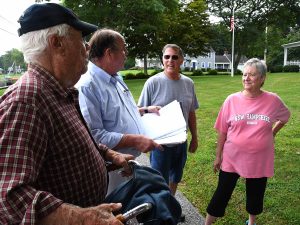 Dr. Edwards talks with people who live in the area before leading a group along Jennys Lane.