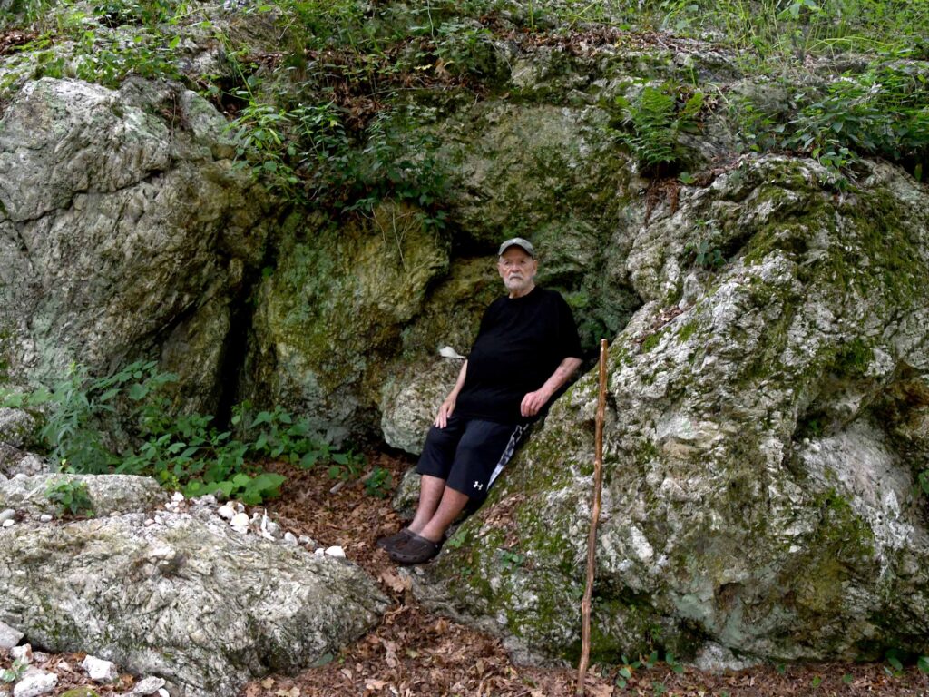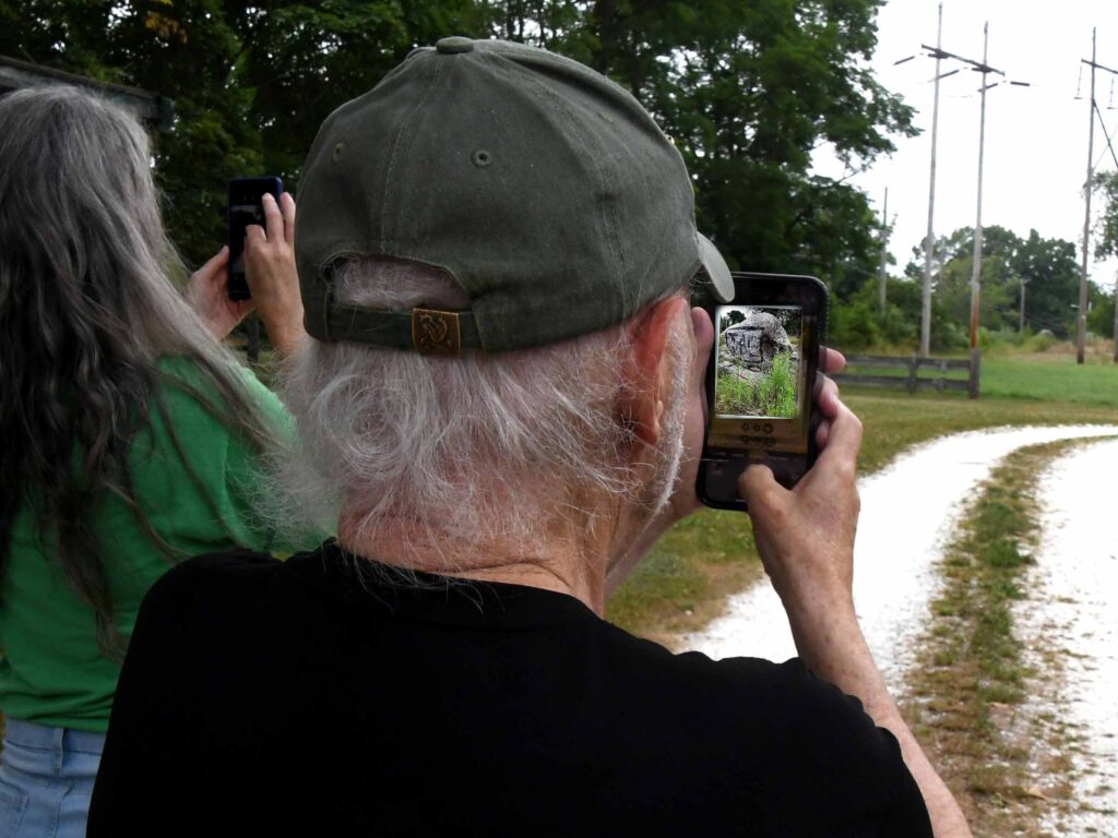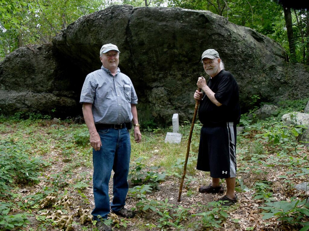 (Above) He and Heather got a look at King’s Rock along Market Street in Swansea before they stopped to photograph the perched rock at Sachem’s Knoll nearby. Later they joined Sowams Heritage Area Project Coordinator David Weed at Margaret’s Cave nearby.