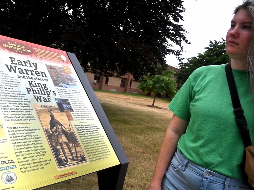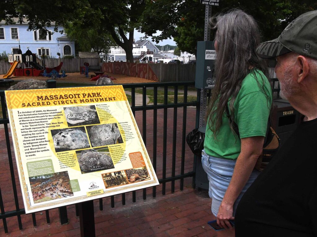 (Above) They rounded out their tour of Sowams with a stop at the Royal Pokanoket Burial Ground at Burr’s Hill Park, a visit to the Seat of Metacom in Bristol, and a stop at the site where the King Philip’s War broke out on June 20, 1675.