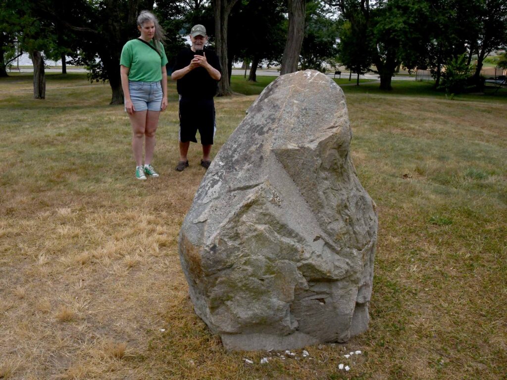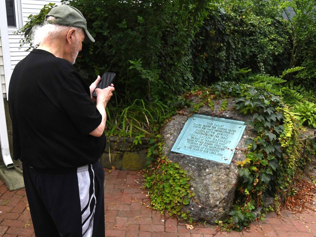 Thom Keely and Heather Schnieder, pictured above at the Seat of Metacom, requested a tour of Sowams as they passed through the area on July 18, 2022. They are both are from West Virginia, and Thom is working on a novel featuring his ancestors from Haverhill, MA who encounter Pokanoket people. Click here for a 4 1/2-minute video interview with them. Click here, here, here, here, and here for more pictures and video of visitors to Sowams.