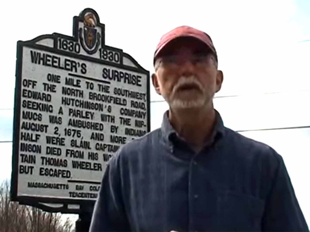 The video begins at an historic marker in Brookfield, MA with an introduction by Dick Revy, a resident of New Braintree and a member of New Braintree’s Quabog Plantation 350th Anniversary Committee. Jeff Fisk, author of Wheel of Surprise, the Lost Battlefield of King Phillip’s War, and Joe Salvadore, a member of the Anniversary Committee, then narrated the video which began with the story of the Great Dying of 1616-1619. [Note: Salvadore’s statement that there was “a harvest feast to mark the occasion” of the March 1621 treaty is incorrect. The feast that was described occurred in the fall and was not related to the treaty.