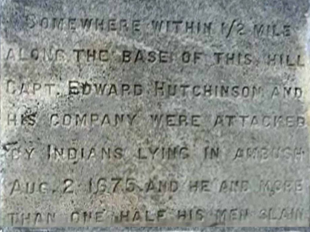 Fisk points to the site of the actual ambush where the brook ends and expands into a wide swampy area. Bill Jenkins, chairman of the Anniversary Committee, then described what happened at the Quabog Plantation after Captain Hutchinson’s return following the ambush. The film ends with a picture of an unidentified stone marker describing the August 2, 1675 attack. Click here for another film produced by the Committee in 2023 to honor Brookfield’s First Inhabitants.