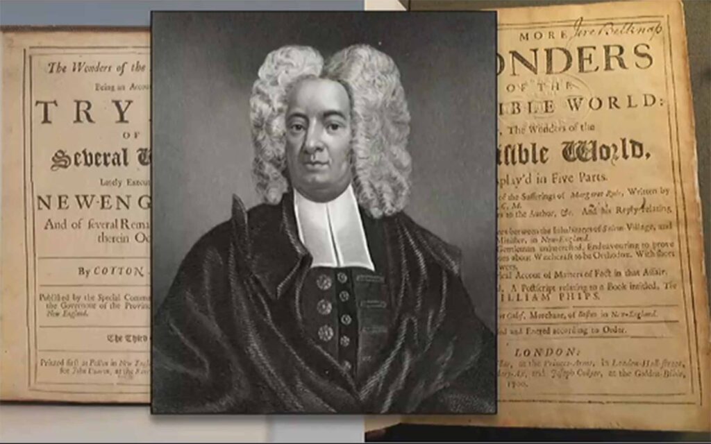 Ms. Burns (above, left) begins her story of where the records originated and where they have been moved over the years since Cotton Mather (above, right) and others recorded what happened during that time.